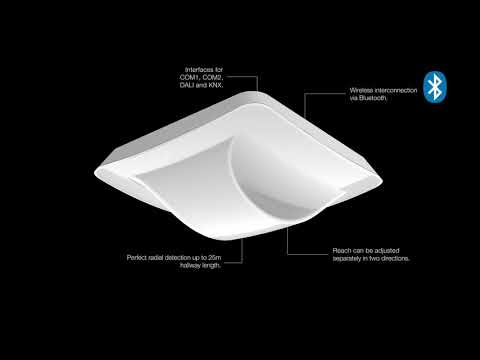 Detekteringsområdets längd kan individuellt ställas in i bägge riktningarna. Hallway-sensorn reagerar på rörelse från gående människa, bil, truck, dörr, garageport etc. Hallway är försedd med integrerad Bluetooth för trådlös sammankoppling av flera sensorer för utökning av detekteringsområdet och möjlighet till grannzonsstyrning.